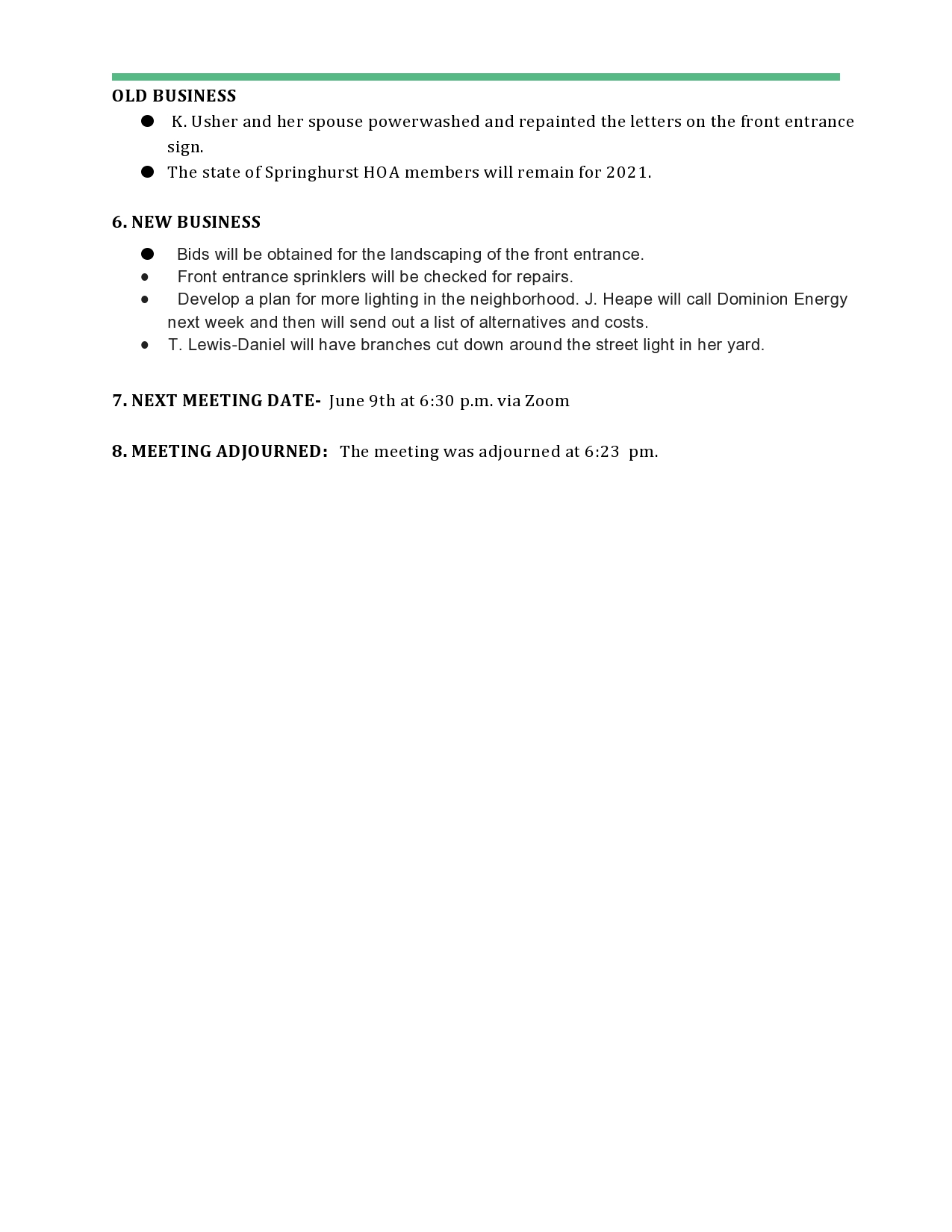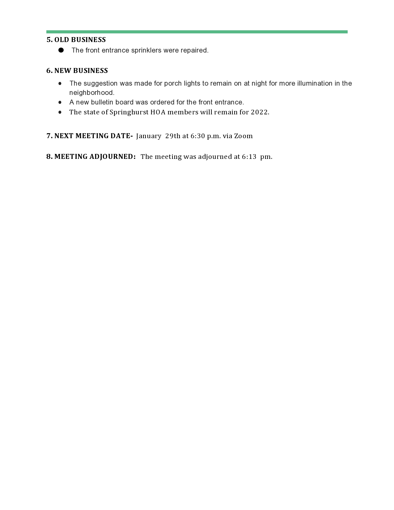Springhurst HOA Board Meeting Minutes November 20, 2020