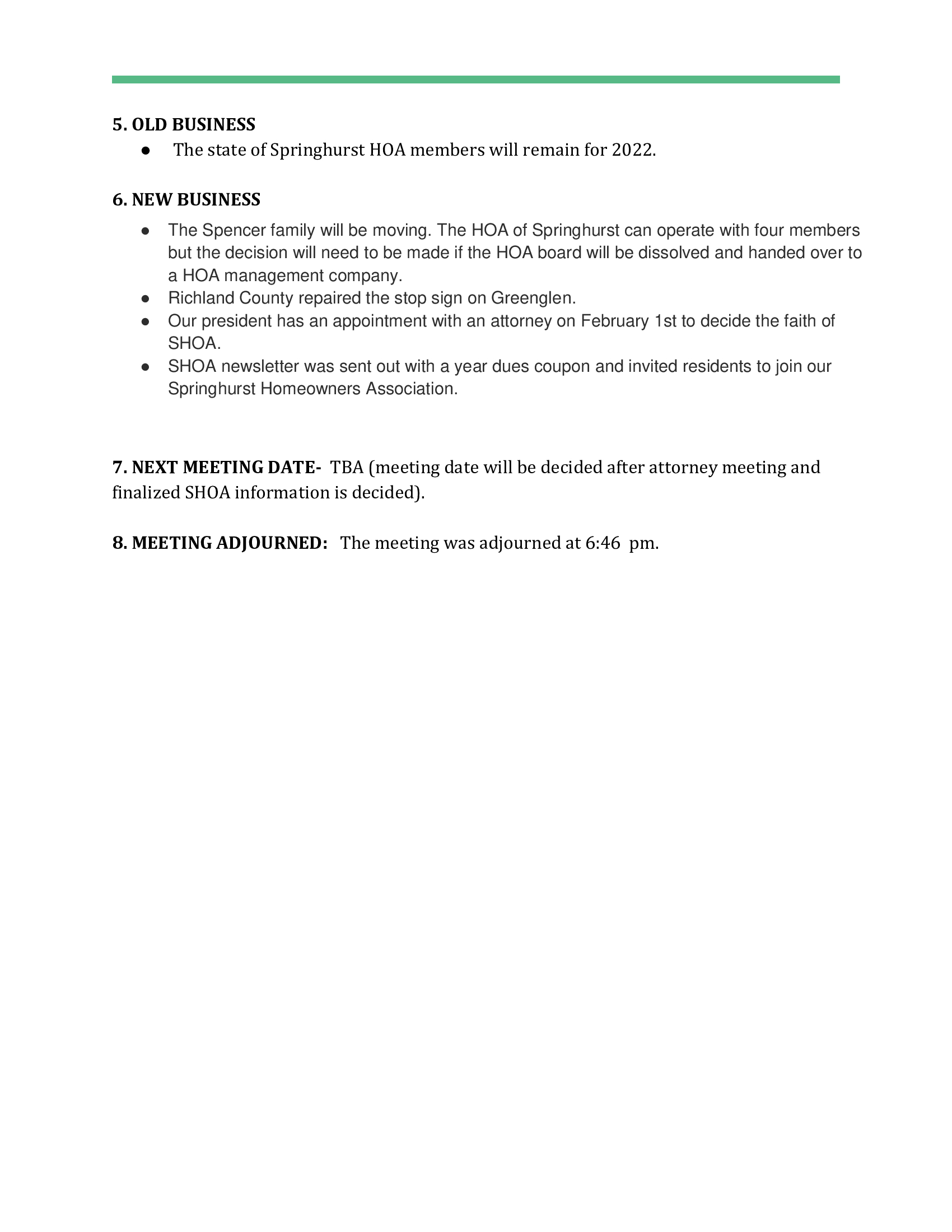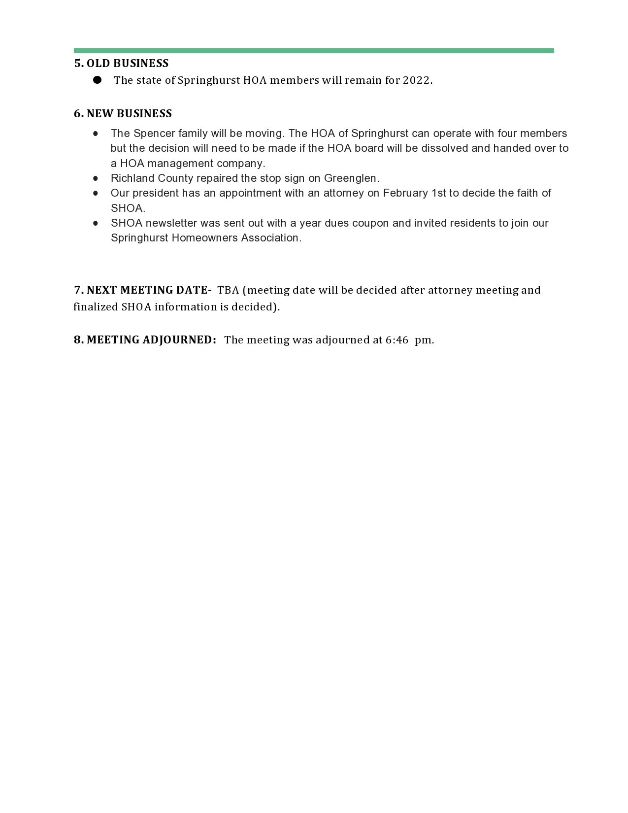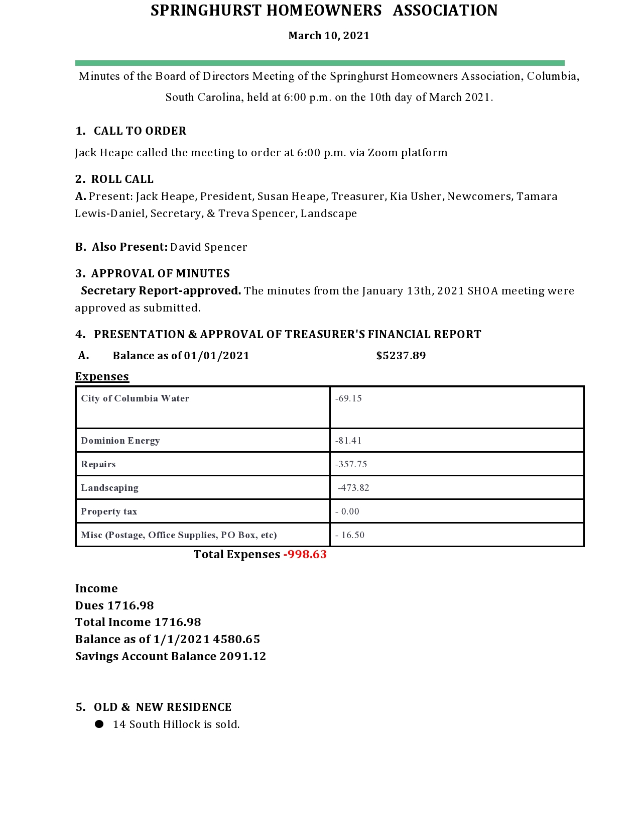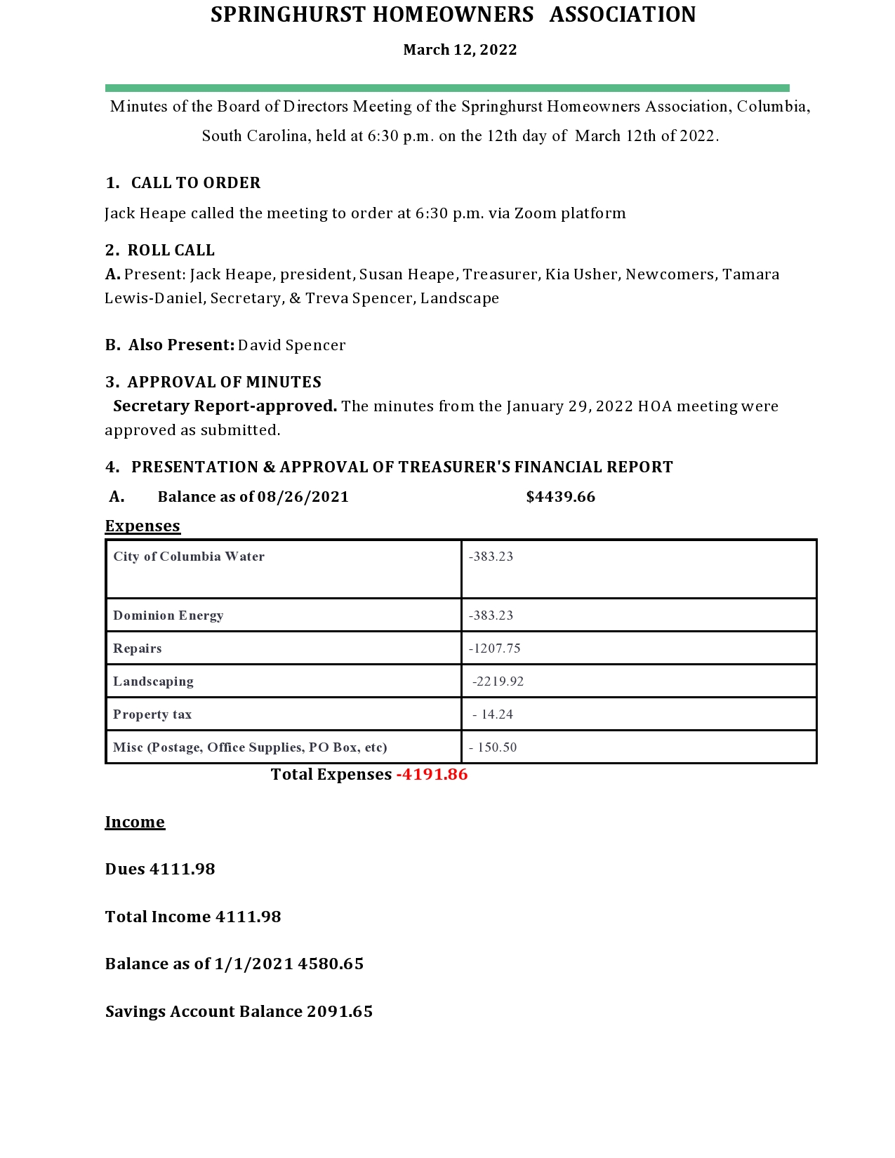Springhurst HOA Board Meeting Minutes March 12 2022